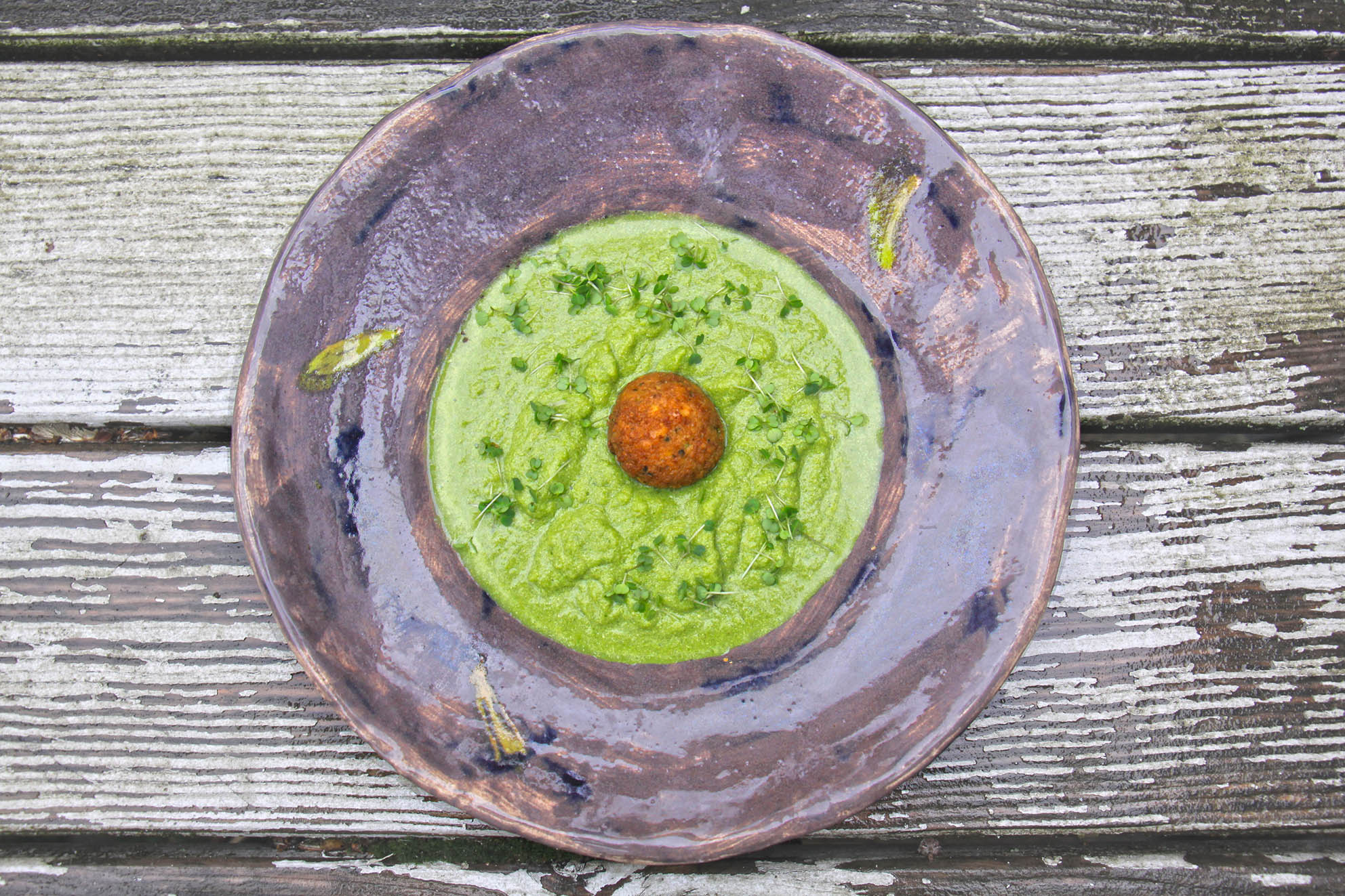 1 frische rote Chili, 1 Zwiebel, 1 Süßkartoffel, 1/4 Wirsing und 1 säuerlichen Apfel klein schneiden und in Kokosöl scharf anbraten mit 1 Liter Gemüsebrühe ablöschen und ca. 25 Minuten köcheln lassen; pürieren und mit 100ml Kokosmilch verfeinern. Mit Pfeffer, Salz, dem Saft 1/2 Zitrone und etwas Kreuzkümmel abschmecken. Als Einlage passen Lammhackbällchen Oder wenn es vegan bleiben soll z.B. Bohnen-Bällchen. Statt Kokosmilch ist auch Cashewmus eine leckere Variante: 50g Cashewkerne 4 Stunden einweichen, abseien und mit 100ml Gemüsebrühe pürieren – diese Mischung dann unter die Suppe rühren.