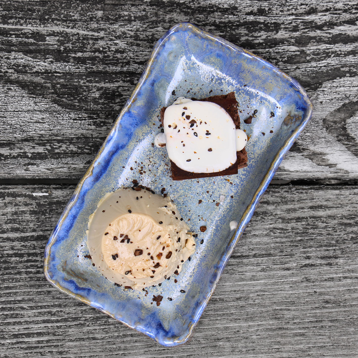 Für den Kuchen: 80g dunkle Schokolade mit 80g Butter schmelzen. 4 Eiweiss mit 80g Zucker aufschlagen. 80g Mehl, 1 TL Natron und 20g Instant Espresso, 3EL getorften Wiskey (z.B. Ardbeg) sowie die „Schoko-Butter“ dazu geben und gründlich verrühren. Bei 160° in einer kleinen (ca. 20×20 cm) Form 35 Minuten backen. 100ml Espresso zubereiten und mit 1EL Agartine aufkochen. Abkühlen lassen und bevor die Masse fest wird auf den fertig gebackenen Kuchen geben. Den Kuchen zum Servieren mit geschlagener Sahne toppen und etwas Instant-Espresso auf die Sahne streuen.