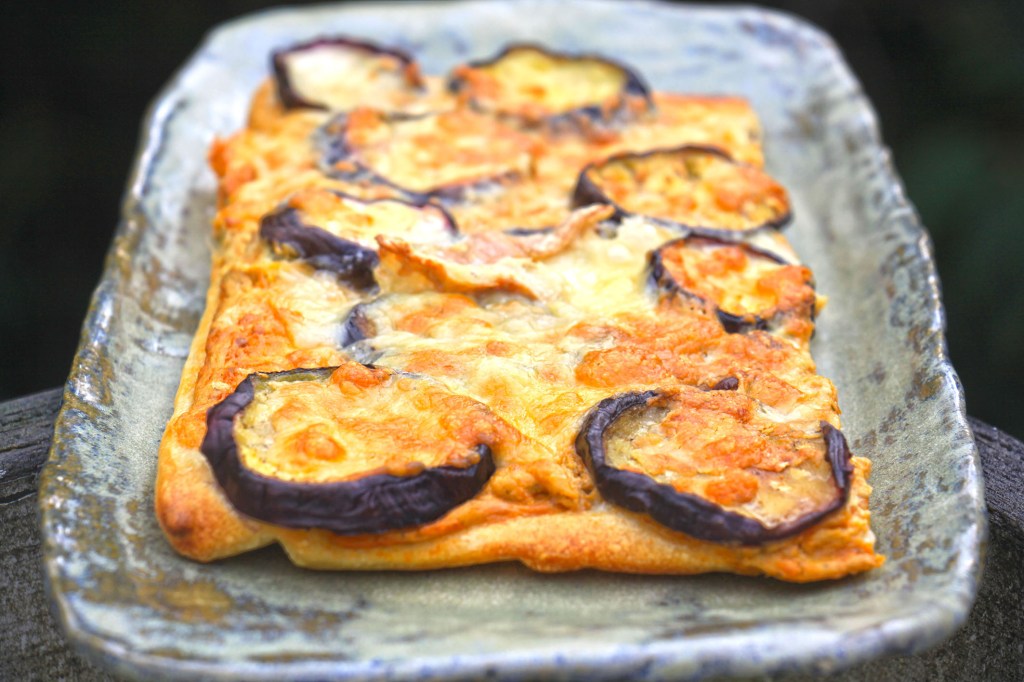Für den Sugo: 125g Tomaten im Ofen 15 Minuten schmoren, anschließend pürieren und durch ein Sieb streichen. 200g Thunfisch (Dose), 2 EL Kapern, 1 EL Mayonaise mit den Tomaten pürieren. Mit Salz und Pfeffer abschmecken. Schmeckt zu gebratenem Fleisch, mit Brot oder mit Pasta. Oder für Pizza (statt Tomatensoße) – z.B. mit Auberginen und einem kräftigen Käse (Bild). Die Auberginen vorher in Scheiben geschnitten einsalzen, abtupfen und ca. 10 Minuten im Backofen vorgaren.