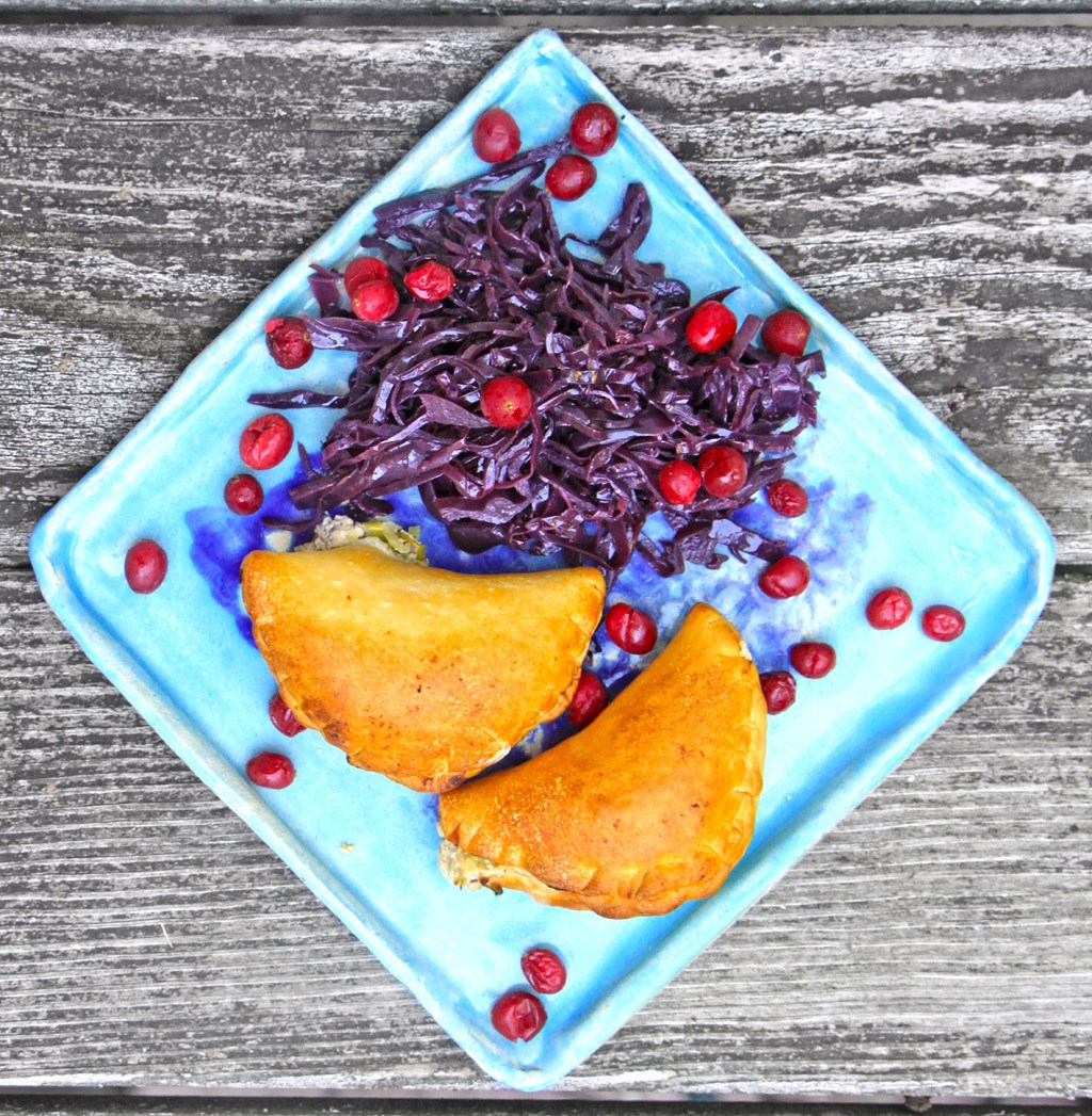 Dazu passt Kürbis-Püree, Rotkraut und Feldsalat.