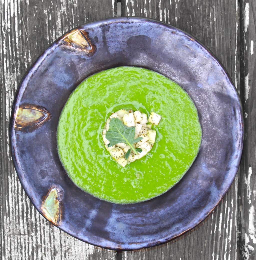 Für 2 Portionen: 1 Kohlrabi klein würfeln und mit 1TL Beizgewürz (z.B. „Orangenbeize“ Altes Gewürzamt)einige Stunden durchziehen lassen. 2 Bund Schnittlauch (ø 3–4cm) fein hacken. 3 geschälte Kartoffeln (ca. 150g) in Stücke schneiden und in 250ml Kochsahne weich kochen. Mit dem Zauberstab pürieren. Mit 1/2 TL Salz, 1 TL Honig sowie etwas Pfeffer und Muskatnuss würzen. Den Schnittlauch dazu geben und nochmal kurz durchpürieren. Den Kohlrabi in Suppentellern anrichten und die heisse Suppe vorsichtig seitlich angießen.