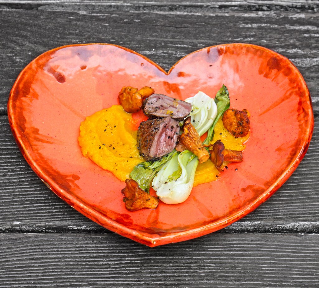 COFFEE LOVER MENÜ – Hautgang für 4: 1EL Kaffeebohnen, 1TL Koriandersamen, 1TL Sesam und 1TL Meersalz fein mörsern. 1 Rehrücken (ca. 500g) parieren und mit der Mischung rundherum einreiben und ein paar Stunden ruhen lassen. 1 kleinen Butternut-Kürbis bei 180° im Backofen 30 Minuten garen. Den Kürbis etwas abkühlen lassen, schälen, die Kerne entfernen und mit 2EL Sesam-Kaffeeöl und 1 TL Kaffee-Curry pürieren (Altes Gewürzamt – enthält: Kaffeebohnen, Pfeffer, Bockshornkleesaat, Kurkuma, Ingwer, Korianderkörner, Fenchelsaat, Gewürznelken, Tomaten getrocknet, Galgant, Knoblauchgranulat, Kreuzkümmel, Sternanis, Wacholderbeeren, Muskatnuss, Chili, Lorbeerblätter, Kardamomsaat). 4 Pakchoi (je nach Größe) halbieren und mit der Schnittfläche nach oben auf ein tiefes Blech legen. 200g Pfifferlinge (möglichst groß oder Kräutersaitlinge) dazwischen platzieren und Alles mit etwas Meersalz und Kaffee-Sesamöl würzen. Im Backofen bei 180° 15–20 Minuten garen. In der Zwischenzeit das Reh in 4 Stücke schneiden in einer Pfanne 3 EL Kaffee-Sesam-Öl erhitzen und die Stücke von beiden Seiten 1–2 Minuten anbraten. Mit 50ml Kaffeelikör (43Baristo) ablöschen und etwas einreduzieren. Dann die Pfanne abdecken, von der Hitze nehmen und das Fleisch noch ca. 5 Minuten ruhen lassen.