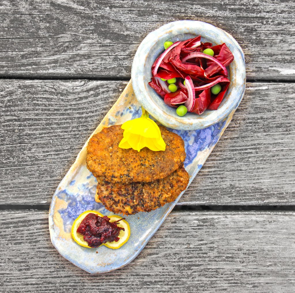 Für 2 Schnitzelfreunde: Die Brösel für diese Schnitzelvariante mit 2 EL gemörserten Kaffeebohnen mischen. 4 kleine Kalbsschnitzel panieren (würzen, in Mehl wenden, durch das Ei ziehen und mit den Bröseln gründlich rundherum bedecken). In einer Pfanne Butterschmalz erhitzen und die Schnitzel von jeder Seite ca. 5 Minuten braten. Die „Schnitzerl“ mit Preisselbeermarmelade auf Toast servieren und einen kleinen Salat dazu vernaschen.