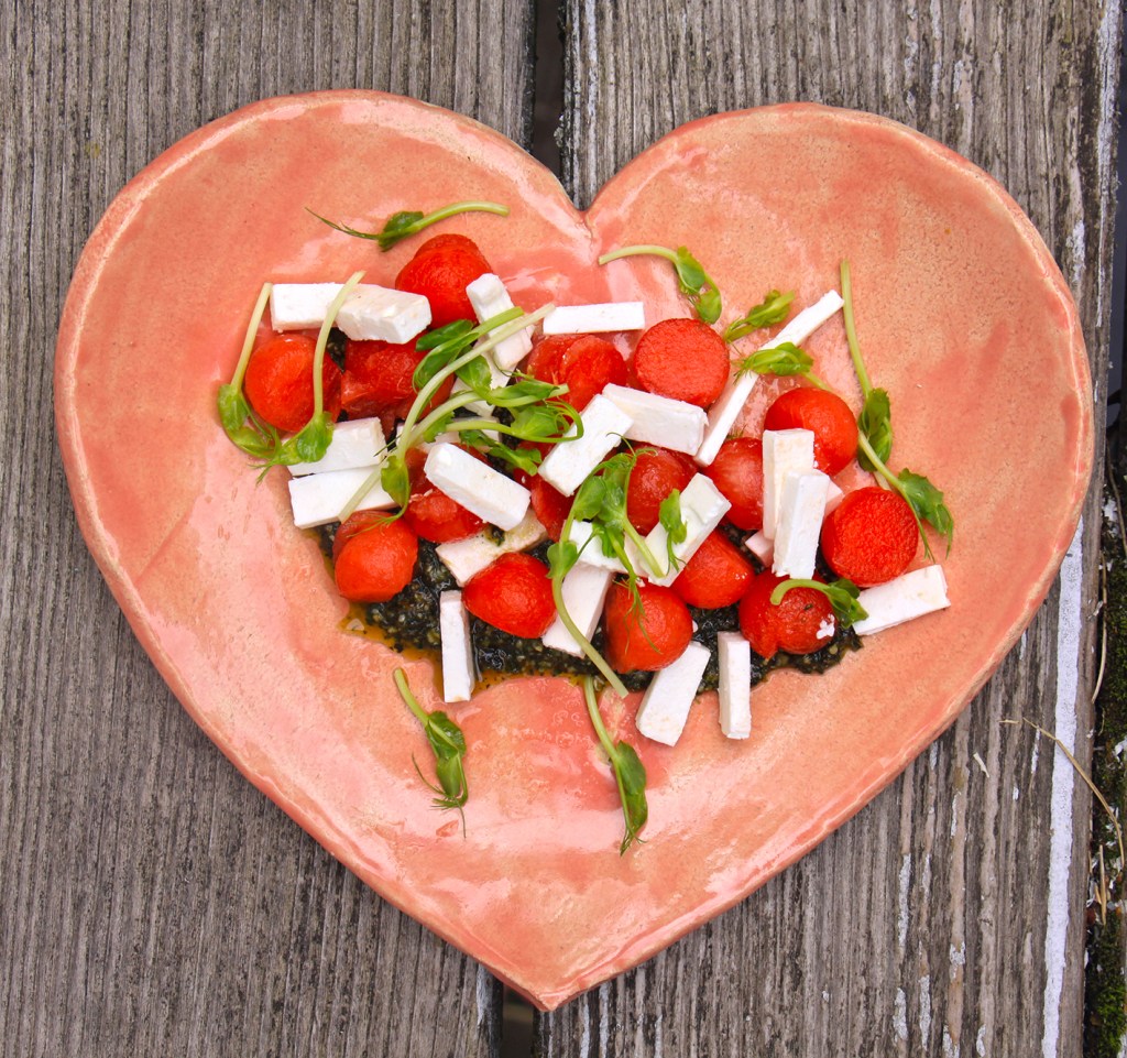 Sommersalat für 2: 50g Minze mit 5 Walnüssen und 2 EL Olivenöl fein pürieren und mit einer Prise Salz und 1 TL Zitronensaft würzen. Aus einem Stück Wassermelone ca. 300 Kugeln ausstechen. 150g Ziegenfeta würfeln. 50g Erbsen-Microgreens waschen. Jeweils 1–2 EL Minzpesto auf den Teller streichen. Die Melonenkugeln mit dem Feta mischen und mit frisch gemörsertem Pfeffer würzen. Auf dem Pesto anrichten und mit Erbsen-Microgreens bestreuen.