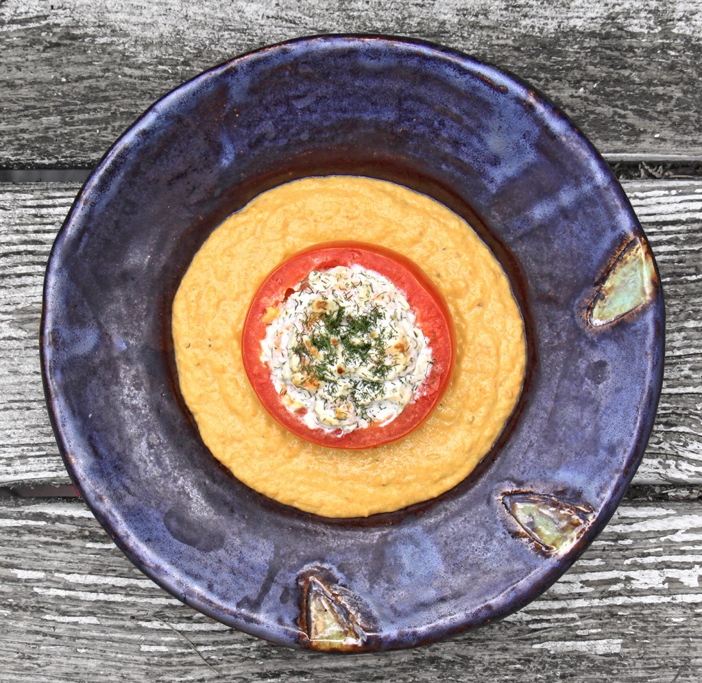 Möhren-Ingwer-Suppe mit gefüllter Tomate