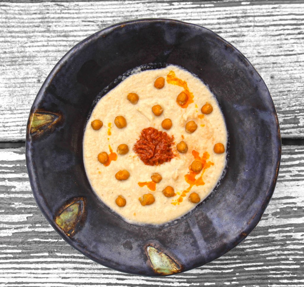 Für 2 als Vorspeise oder als Grillbeilage: 50g Kichererbsen aus der Dose waschen. 200g im Backofen gegarte Rote Bete schälen und im Mixer mit den Kichererbsen, 2 EL Schwarzkümmelöl und etwas Salz pürieren. Schmeckt mit Fladenbrot und Sprossen.
