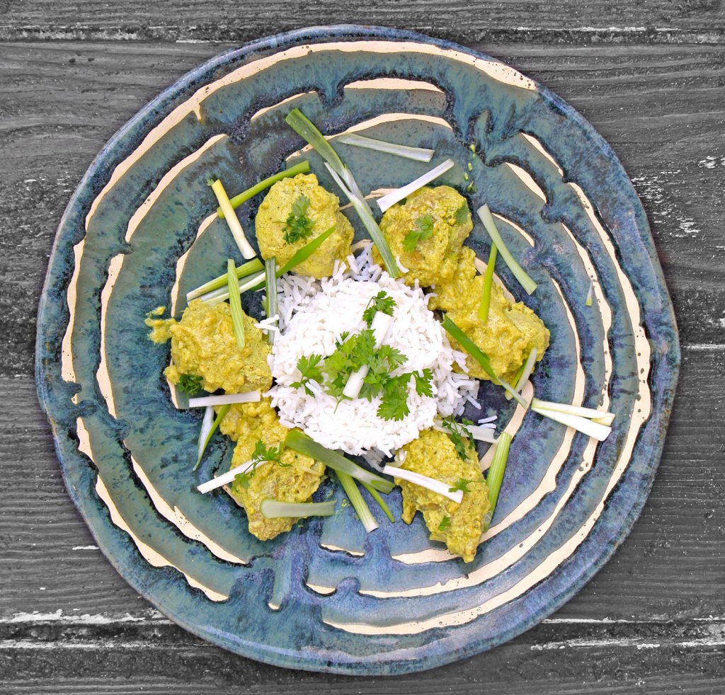 Für 2 Portionen: 250g Seeteufel-Filet in ca. 4×4 cm große Stücke schneiden. 1 kleine Zwiebel, 1 kleines Stück Ingwer und 2 Knoblauchzehen fein würfeln. 2 EL Kokosöl erhitzen und den Fisch kurz und scharf rundherum anbraten. Aus der Pfanne nehmen und die Zwiebel-Ingwer-Knoblauch-Mischung anschwitzen. 1 EL Tikka-Tandoori-Gewürzmischung (besteht aus Paprika, Kurkuma, Ingwer, Salz, Knoblauch, Koriandersamen, Zimt, schwarzem Pfeffer und Chili) darauf streuen und mit 250 ml Kochsahne ablöschen. Nun den Fisch wieder dazu geben und alles bei wenig Hitze ca. 10 Minuten schmoren. 4–6 Frühlingszwiebeln in „Stifte“ schneiden. 1 Tasse Basmati-Reis mit 2 Tassen Wasser und 1 TL Salz aufkochen und mit geschlossenem Deckel 15 Minuten mit wenig Hitze fertig garen. Beim Anrichten die Frühlingswiebeln frisch über dem Fisch verteilen.