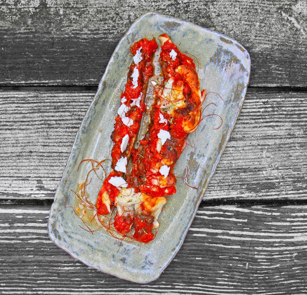 Für 2 Orient-Fans: 4 Schlangen-Auberginen halbieren und aushöhlen. 200g Lammhack mit 1 EL Harissa, und 1 EL Kräutern (Thymian, Rosmarin, Salbei) sowie 1 TL Kreuzkümmel und 1 TL Räucherpaprika mischen. 400 ml Tomatenstücke mit 4 EL Hummus und 1 kleinen roten Chili (ohne Kerne) pürieren. Das Hack in die Auberginen drücken mit der Tomatensoße bedecken. Mit 100g Ziegenkäse bestreuen und ca. 30 Minuten bei 180° überbacken.