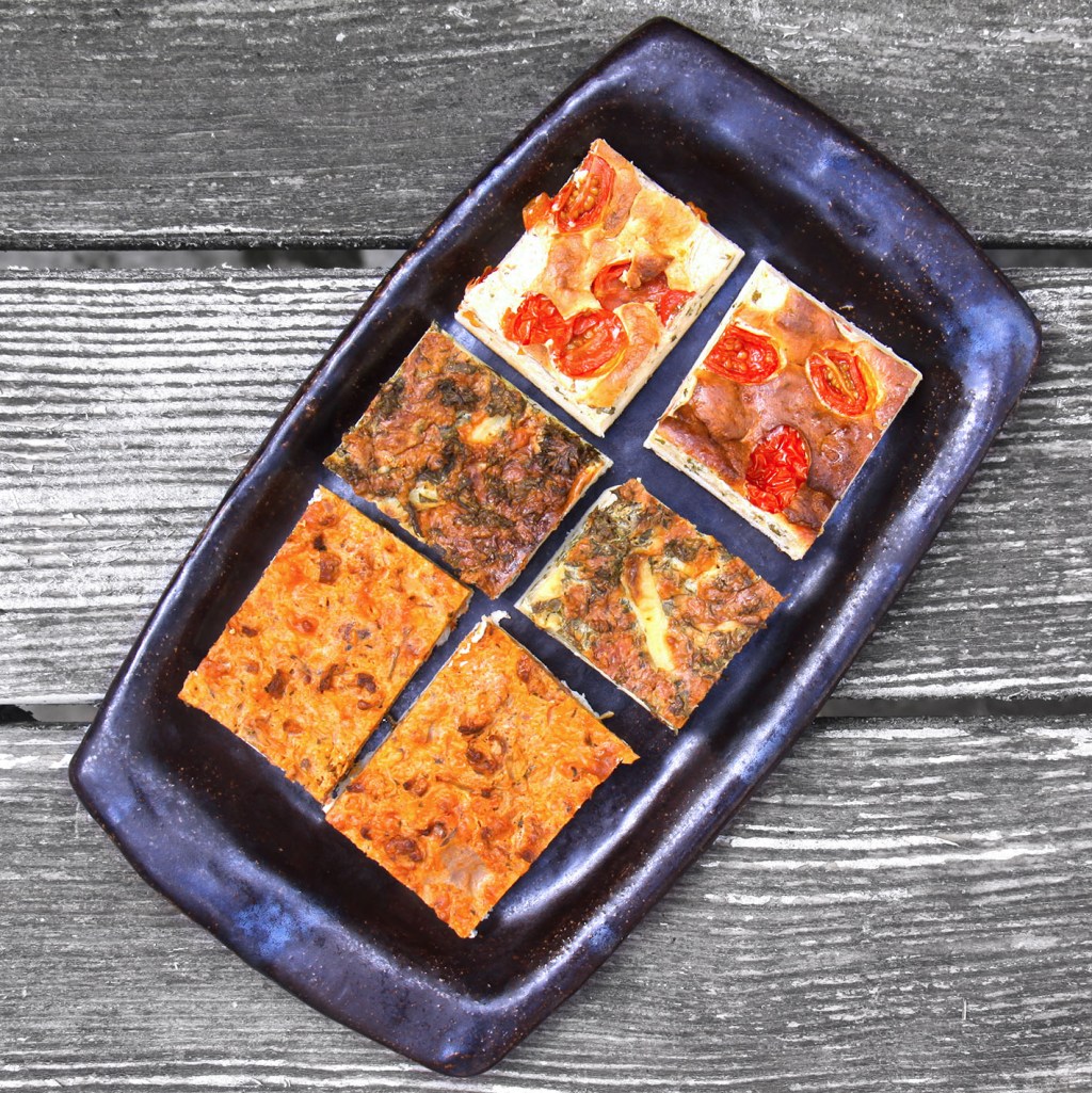 Belag für Springform ø 28 cm: 500g Cocktailtomaten halbieren, 4 Eier und 400g Ziegenfrischkäse gut verrühren, mit reichlich Rosa „Pfeffer“ würzen, die Masse auf den Teig geben. Die Tomaten halbieren und mit 1 EL Puderzucker, 1 TL Meersalz und 1 Olivenöl im Backofen bei 100° ca. 15 Minuten anschmoren und anschließend mit der Schnittfläche nach oben in die Frischkäsemasse setzen – für ein Backblech braucht ihr etwas mehr Belag – 200g Tomaten, 1 Ei und 100g Frischkäse dazu rechnen. Im vorgeheizten Ofen im unteren Drittel bei 180° ca. 40 Minuten backen.