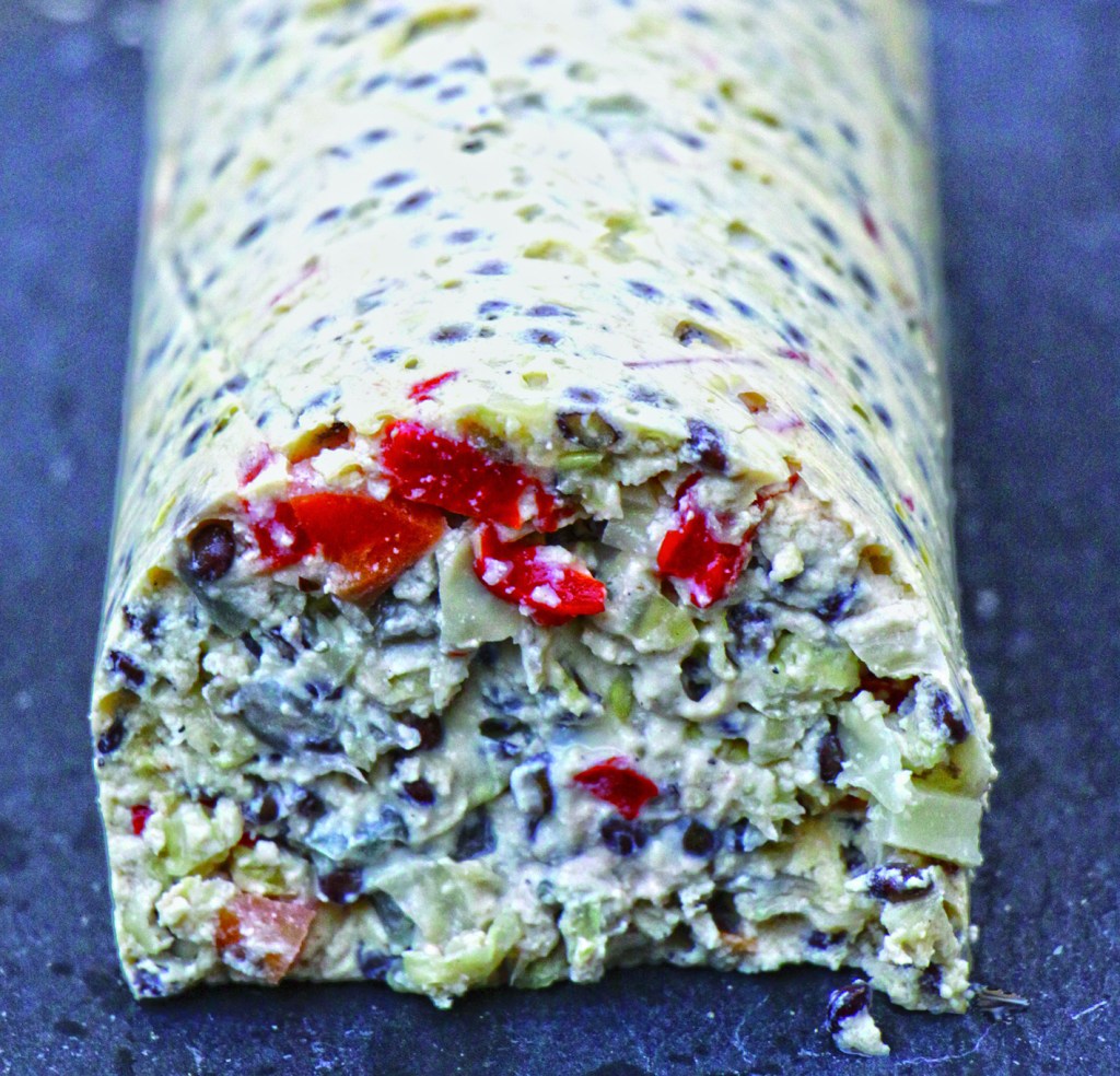 GRÜNER APFEL & SCHNITTLAUCH (Sauer, herb): 1 geschälten Apfel mit EL Hanföl und 1 EL Holunderblütensaft pürieren, Schnittlauch fein hacken und untermischen.