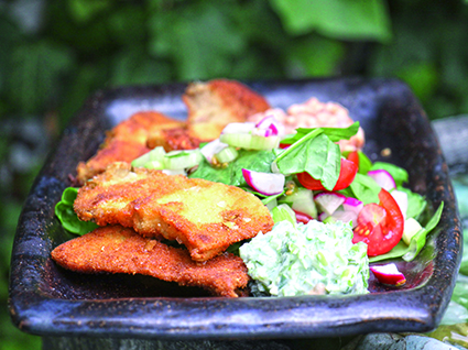 in „1 – 2 – 3 – 4“ panieren und anschließend panieren.