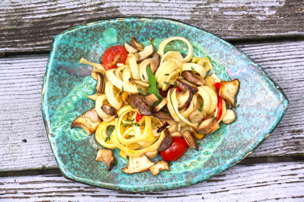 Ich habe euch ja Pilzrezepte versprochen – hier jetzt noch einmal ein Nachschlag. Steckrüben-Linguini mit gebratenen Steinpilzen – das ist soo lecker, und ganz leicht, weil man zu den Pilzen nicht auch noch Pasta ist. Probiert es aus …