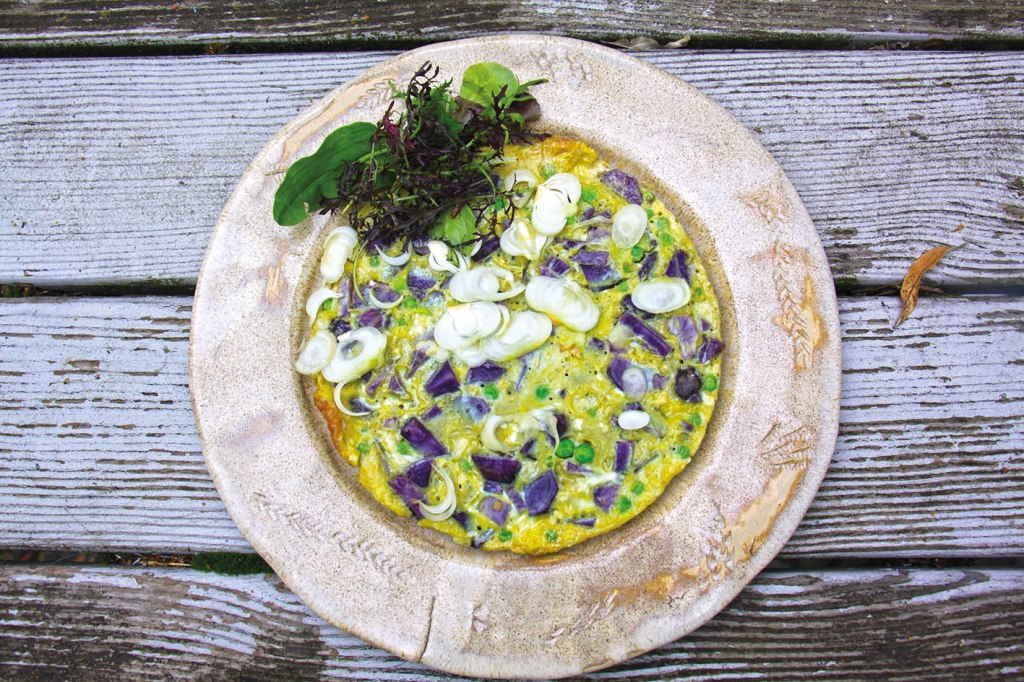 1. Olivenöl, 2. Kichererbsenmehl, 3. verquirltes Ei und