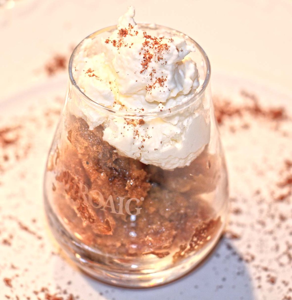 Für mindestens 6 Stunden ins Gefrierfach geben und alle 60 Minuten vom Rand in die Mitte schaben. In Gläschen anrichten je einen Schuss Wiskey darübergeben und mit einer Sahnehaube bedecken – mit Kakaopulver zur Deko servieren.